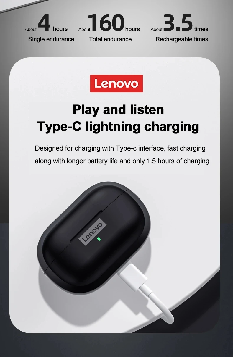 Lenovo LP1S TWS Wireless Bluetooth Earphone Sports Headset Stereo Earbuds HiFi Music With Mic