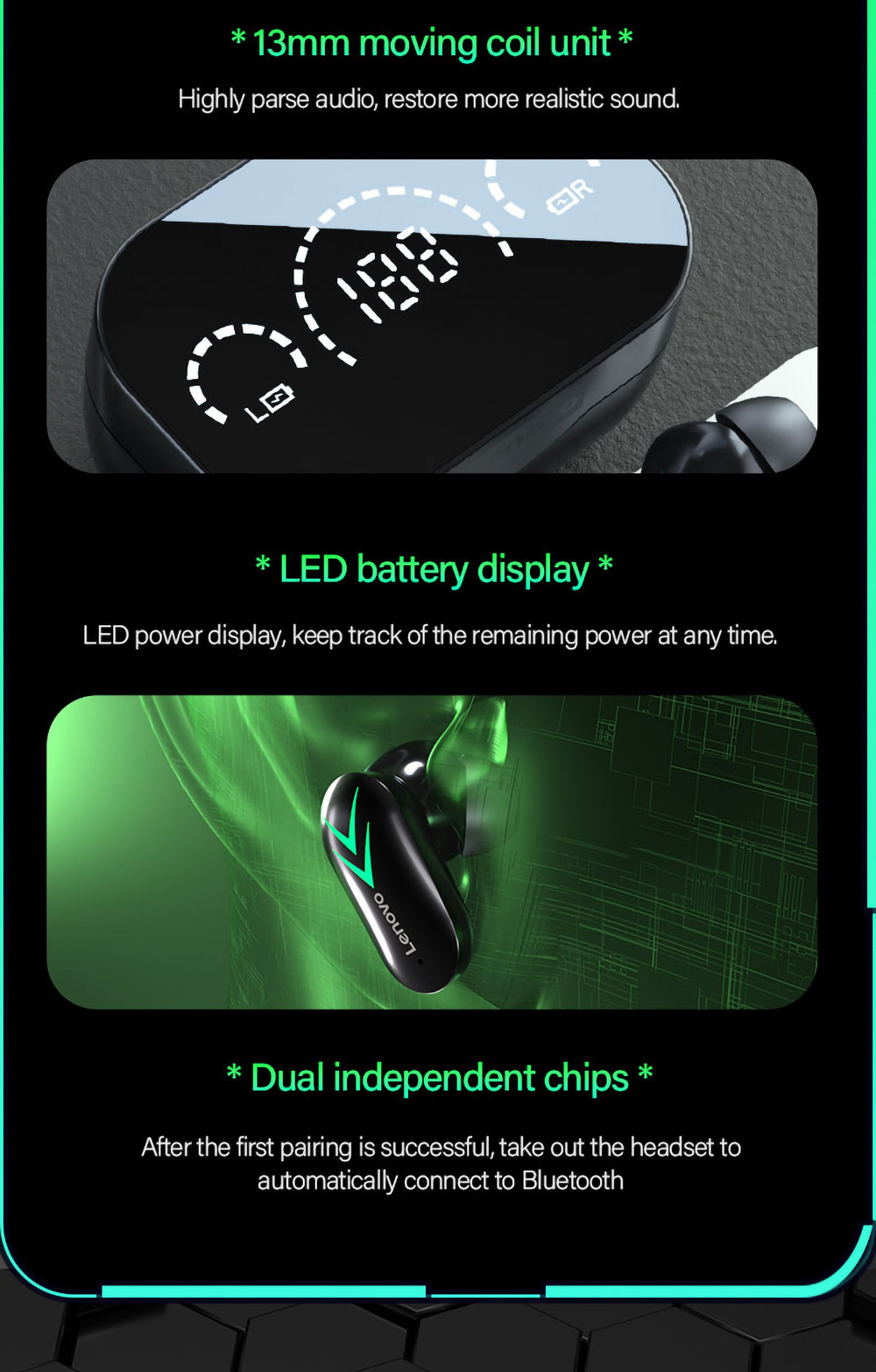 Lenovo XT82 TWS Wireless BT5.1 Touch Control Headphone Earphones